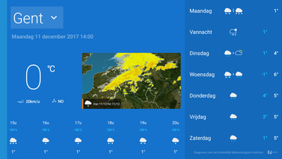 Kies de gemeente die u wilt en bekijk de waarnemingen van het ogenblik, de voorspellingen per uur en voor de komende dagen.